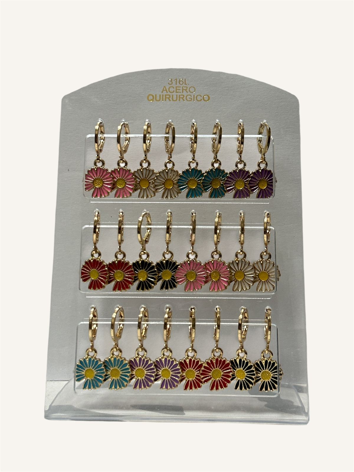 Aros por blíster cerrado, trae 12 pares en total. Modelos surtidos.