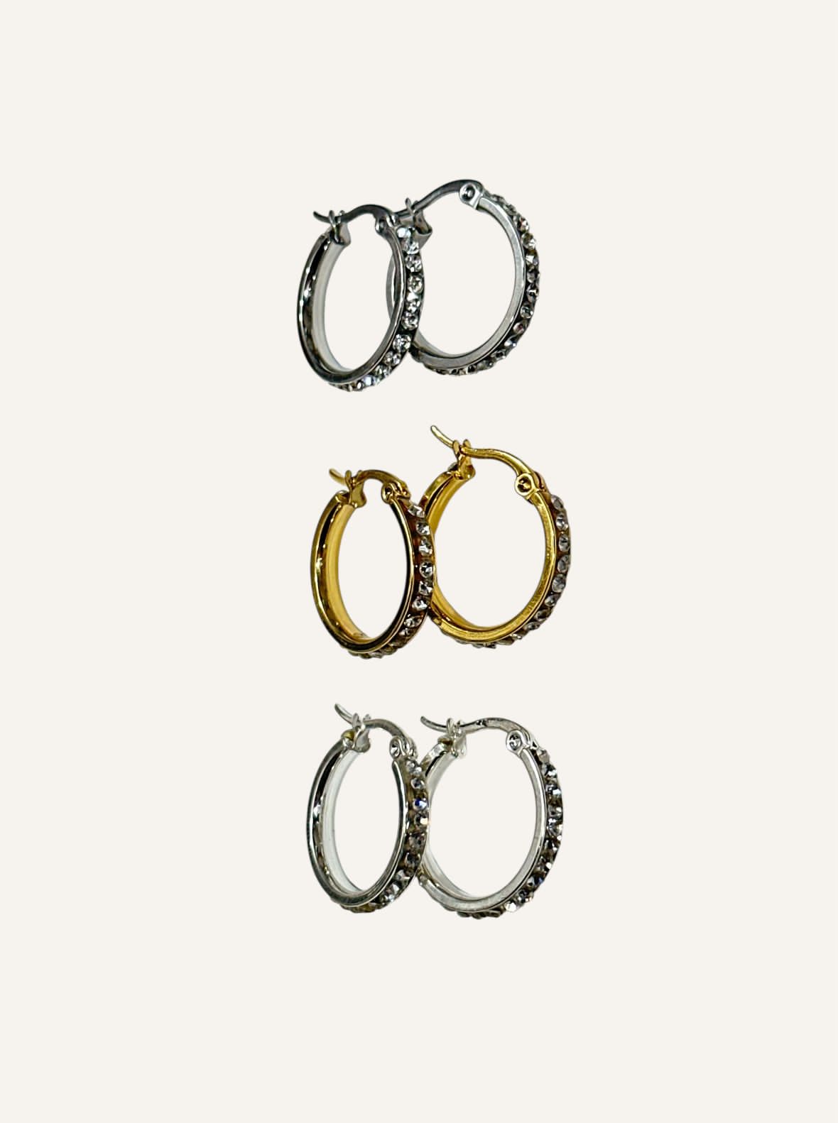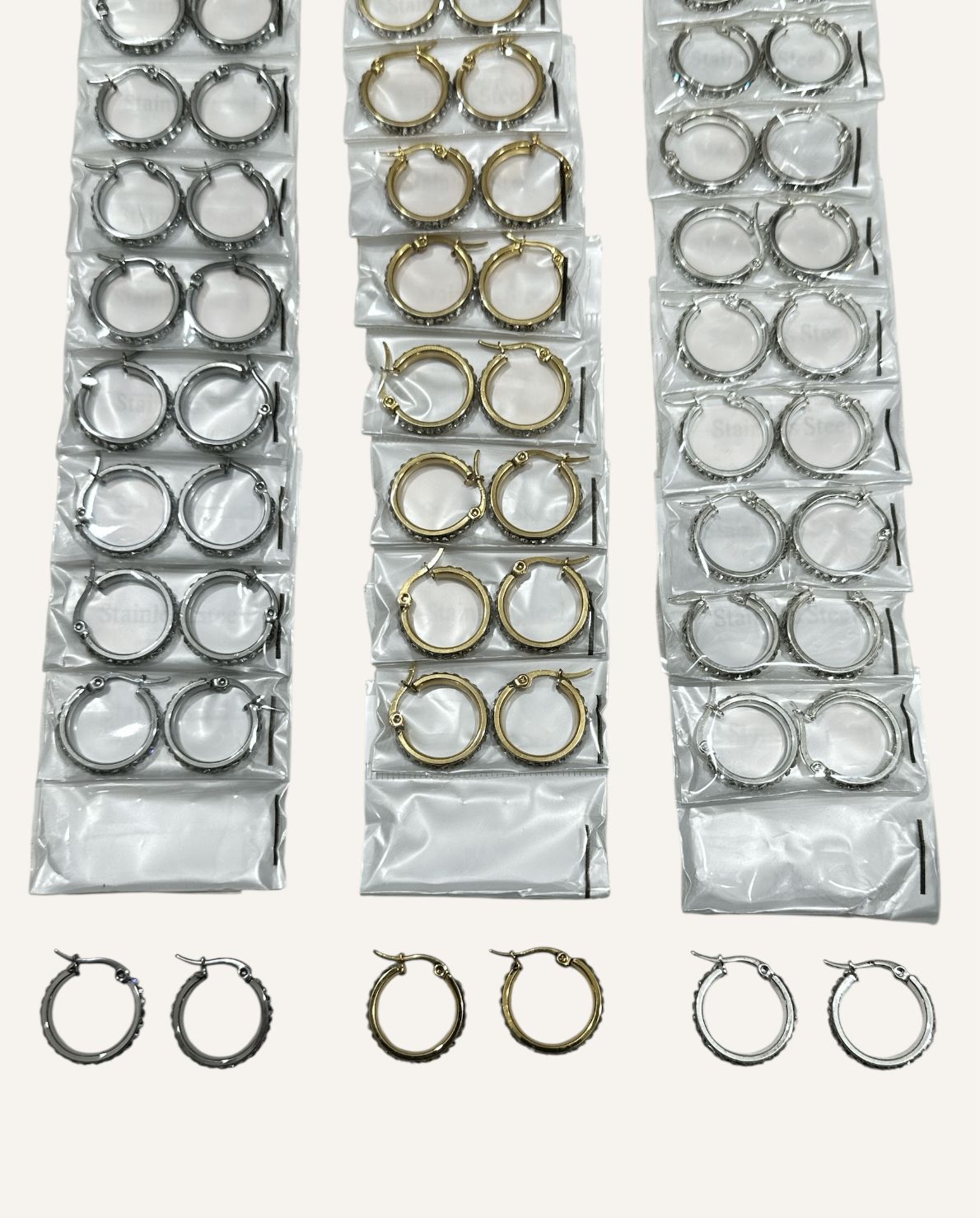 Aros por tira, trae 12 pares en total. Modelos como en la foto.