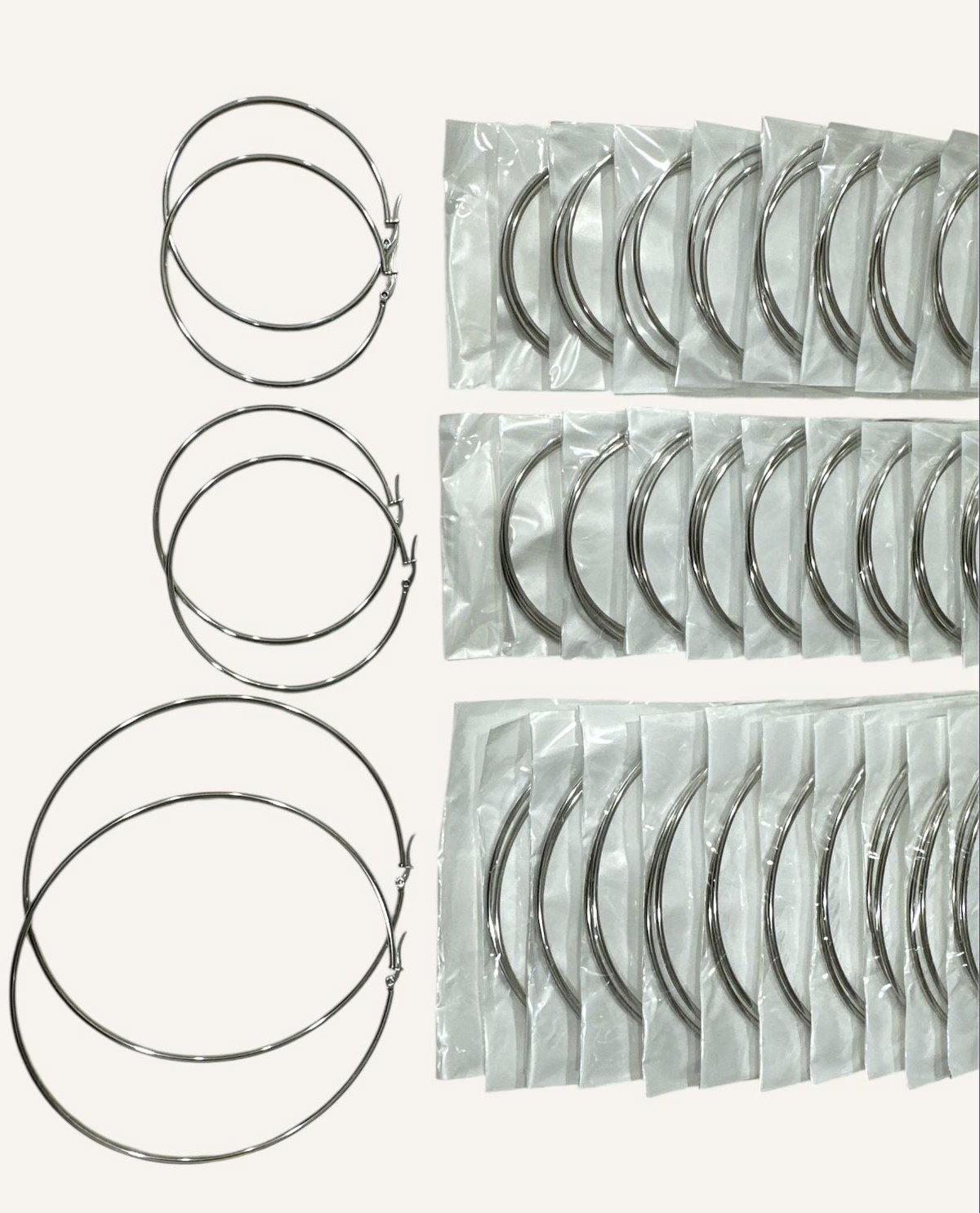 Aros por tira, trae 12 pares en total. Modelos como en la foto.