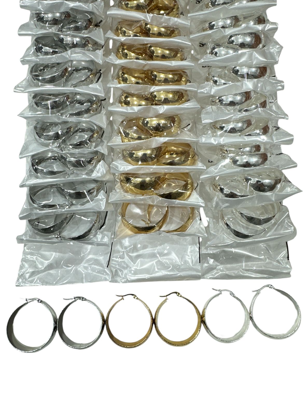 Aros por tira, trae 12 pares en total. Modelos como en la foto.Material: acero quirúrgico