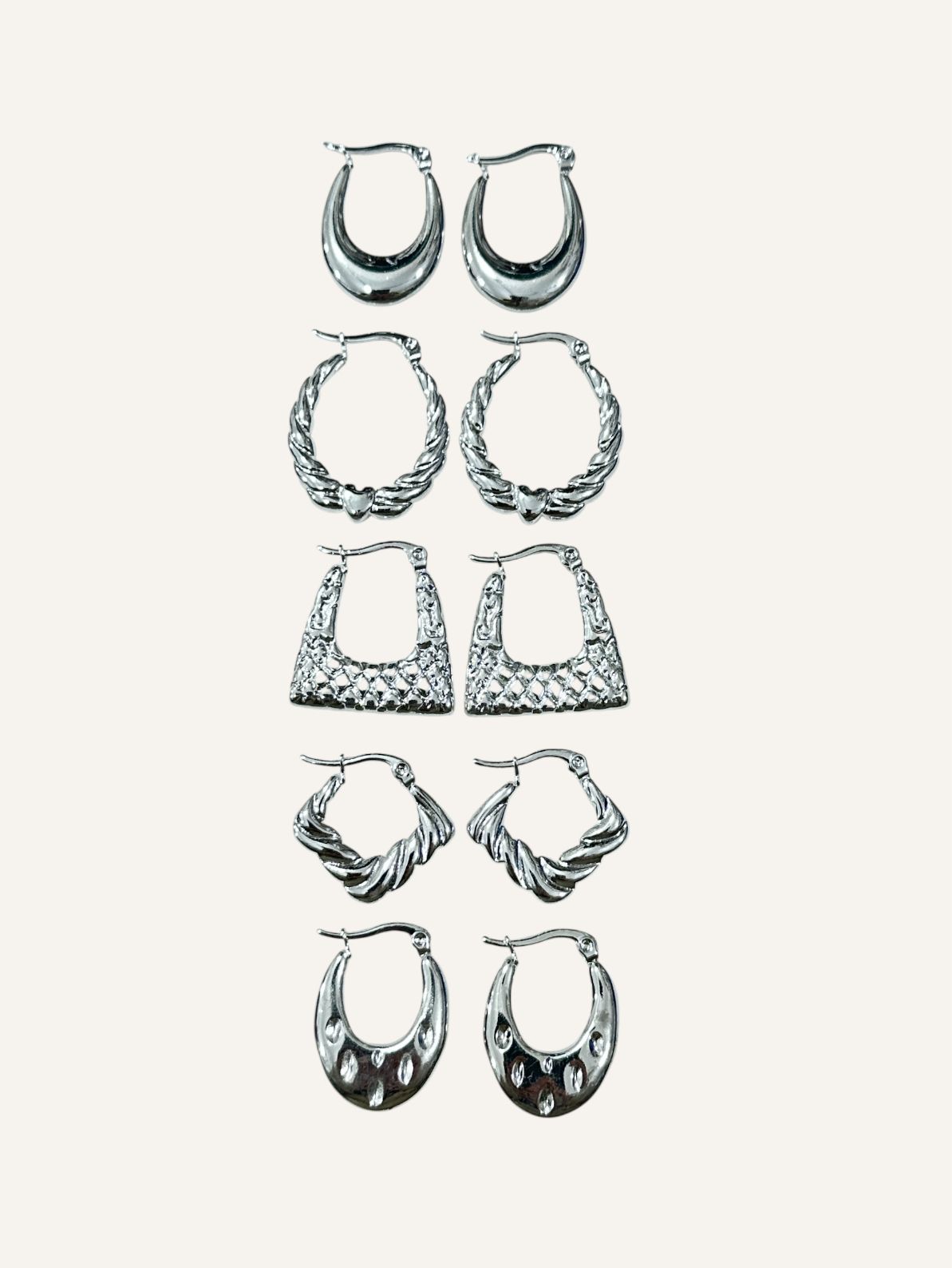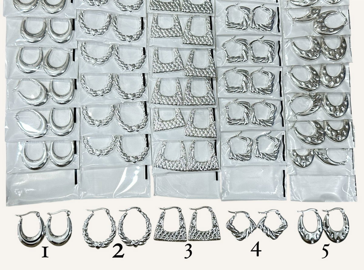 Aros por tira, trae 12 pares en total. Modelos como en la foto.Material: acero quirúrgico