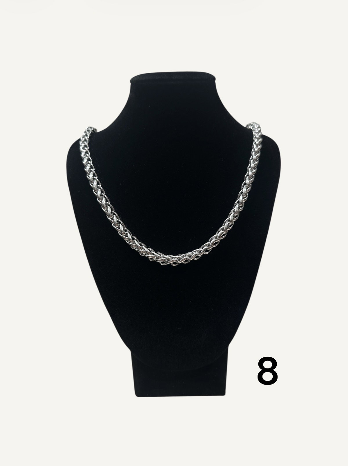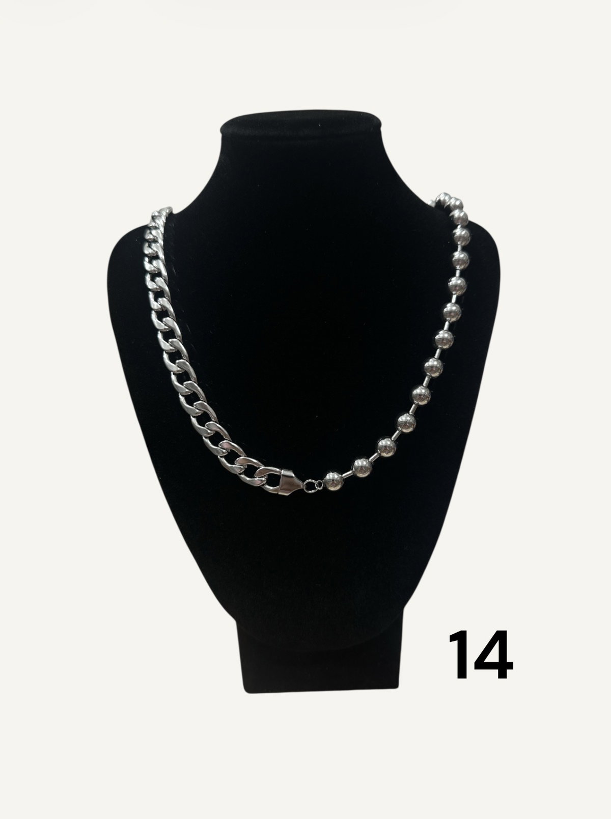 Cadenas surtidas de acero quirúrgico, color plateado.