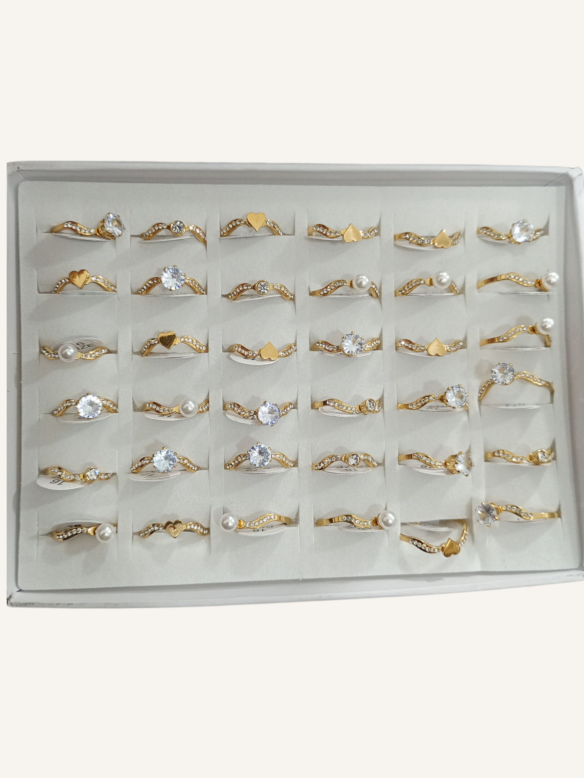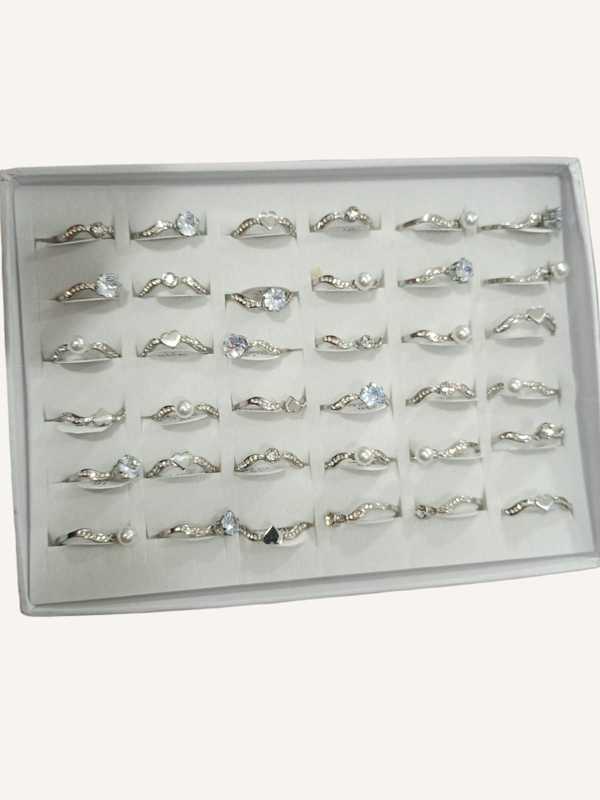 Caja de anillos surtidos de acero quirúrgico.