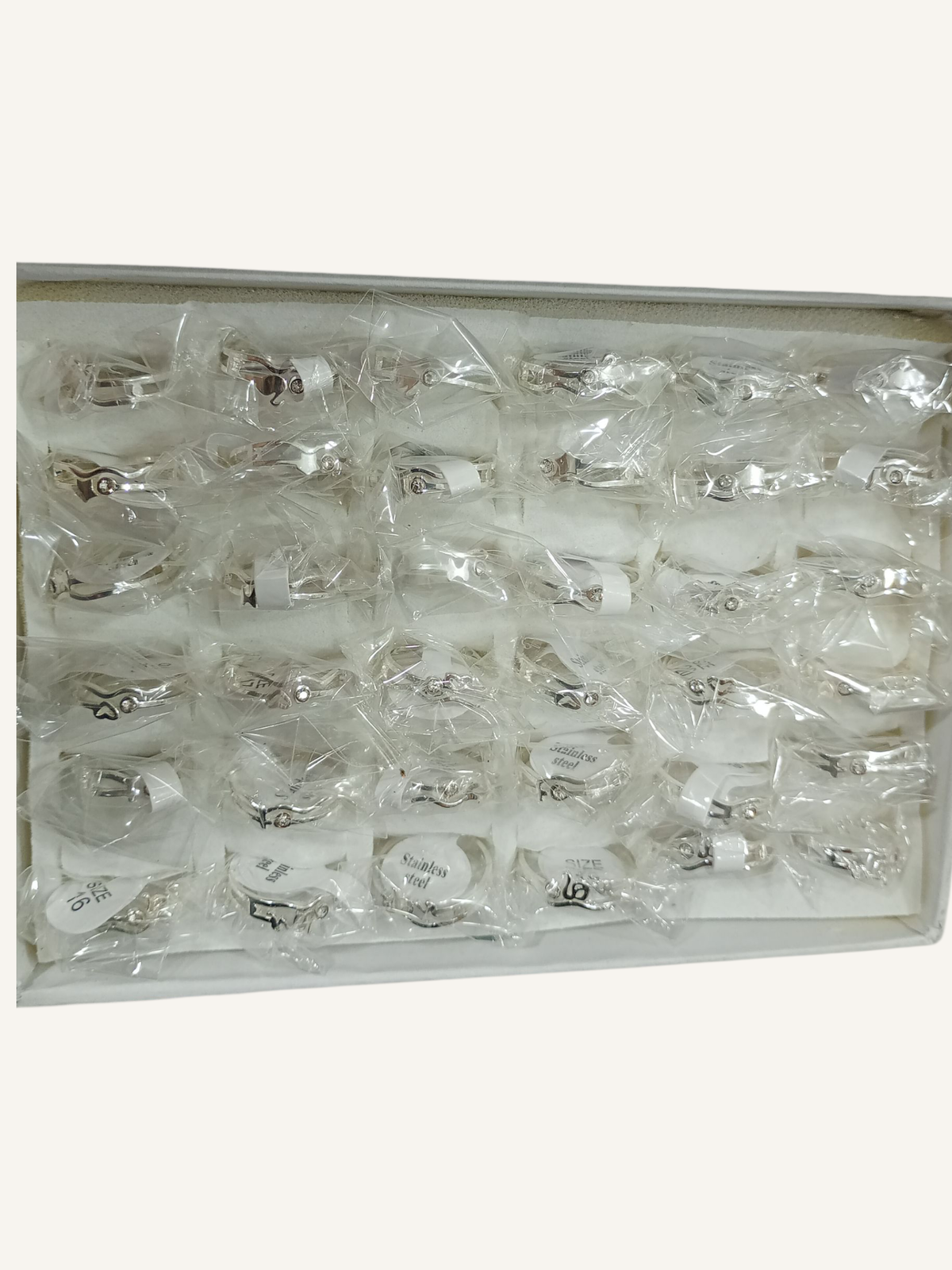 Caja de anillos surtidos de acero quirúrgico.