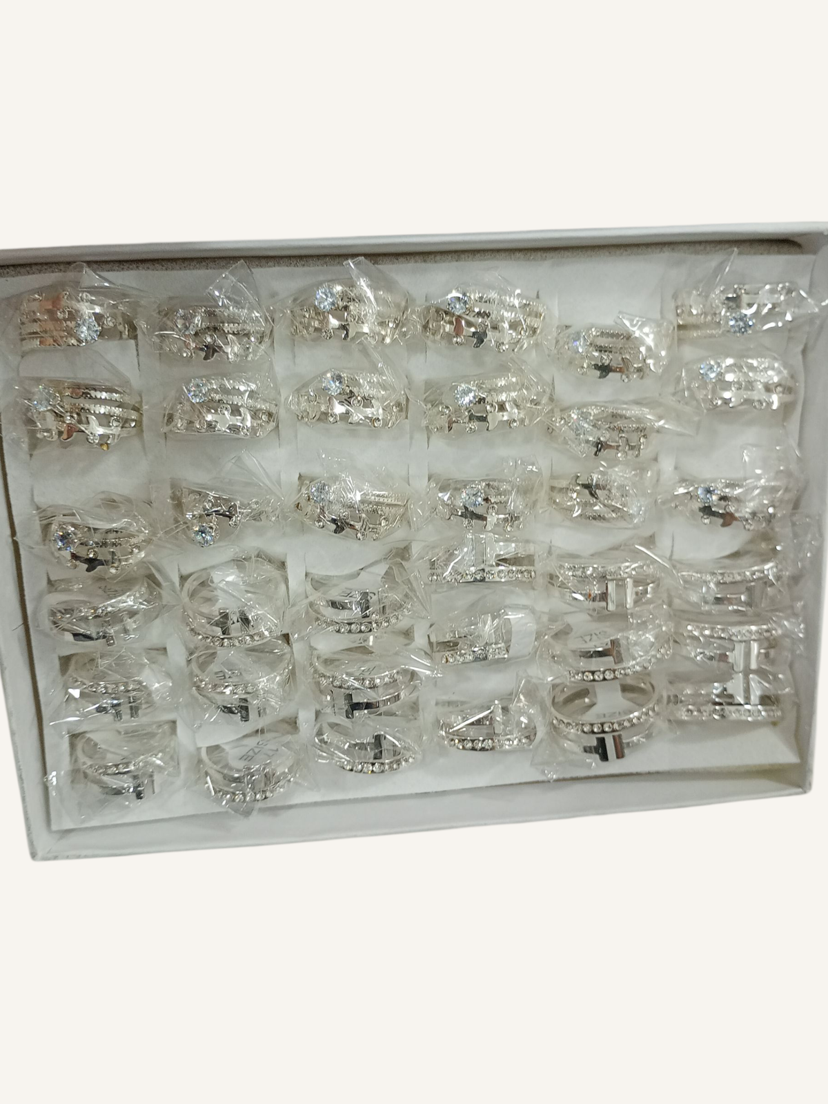 Caja de anillos surtidos de acero quirúrgico.