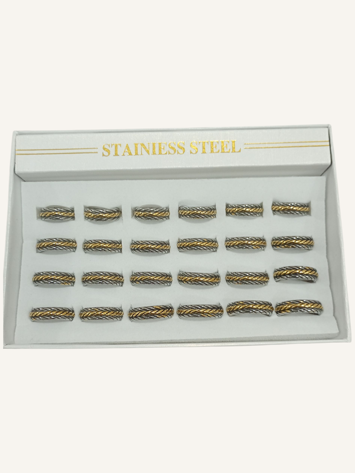 Caja de anillos surtidos de acero quirúrgico.