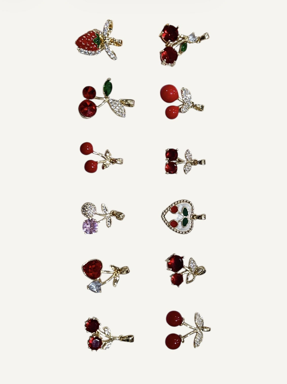 Paquete de dijes de cereza, material acero quirúrgico y cobre.