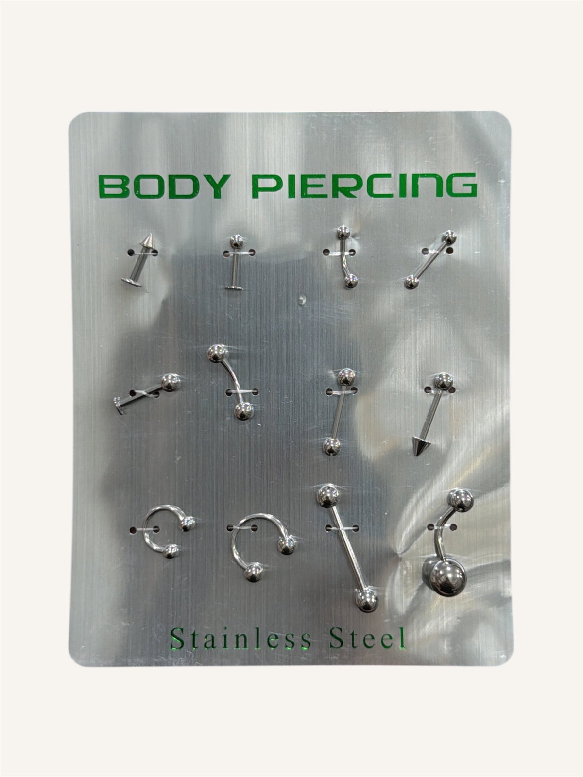 Piercings surtidos de 12u x plancha. No vendemos x unidad.